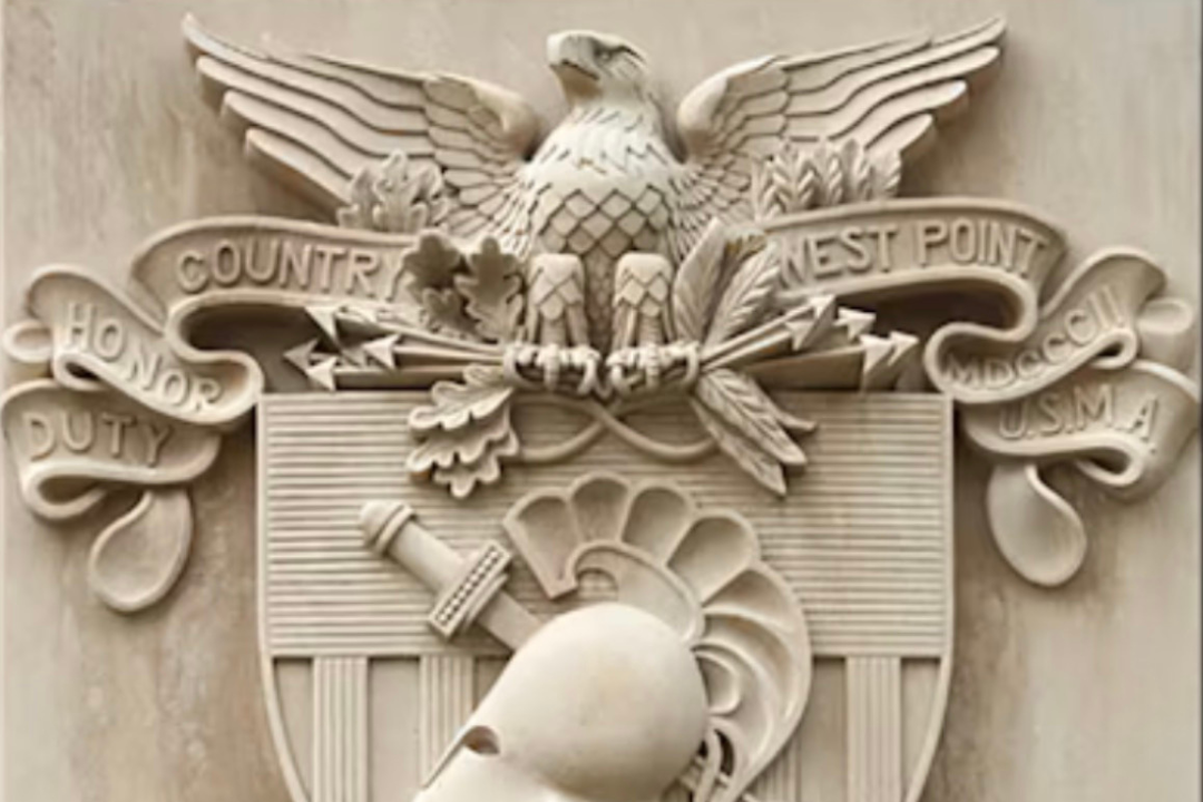 West Point’s coat of arms and motto, “Duty, Honor, Country,” were adopted in 1898 to reflect the academy’s national character, military role, and educational mission. Featuring symbols like a sword, Athena’s helmet, and the American eagle, the design embodies war, wisdom, peace, and patriotism. Since then, the coat of arms has become a lasting emblem of West Point’s ideals and tradition.