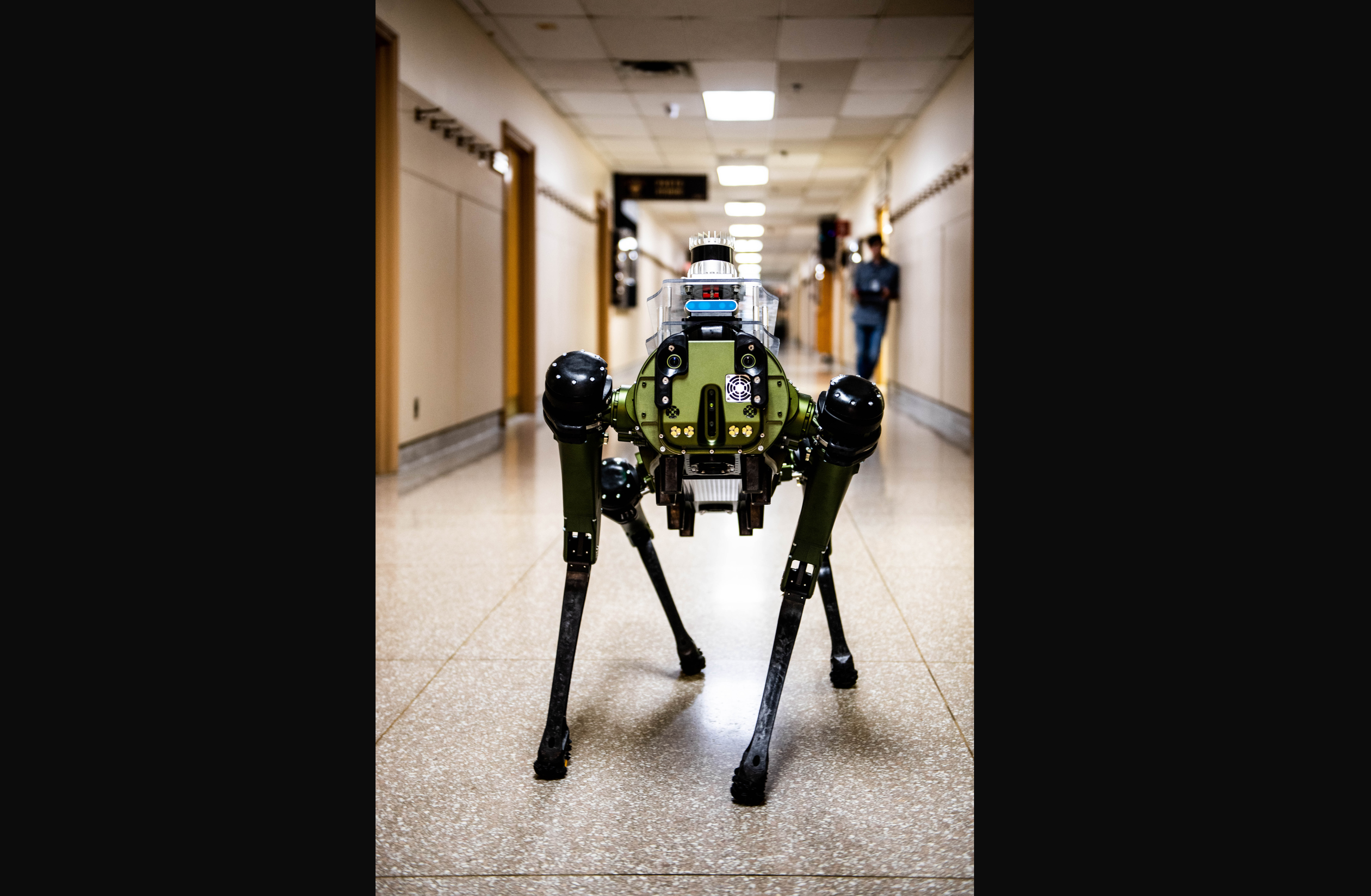 For example, Quadcopter drones would map out an area and focus on a central GPS location and the robotic quadruped pet dog moves to that location to identify any CBRN threats in the area.