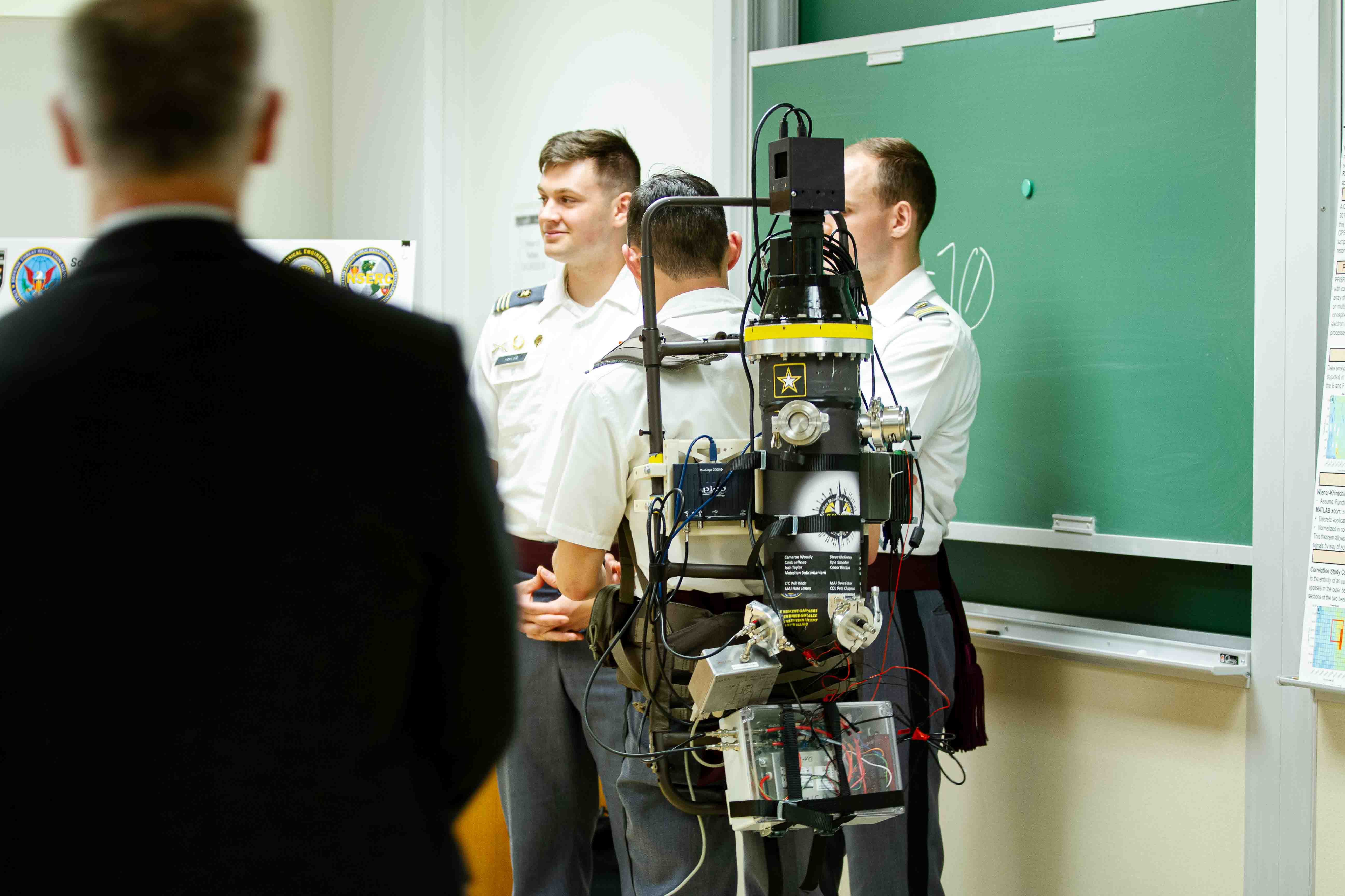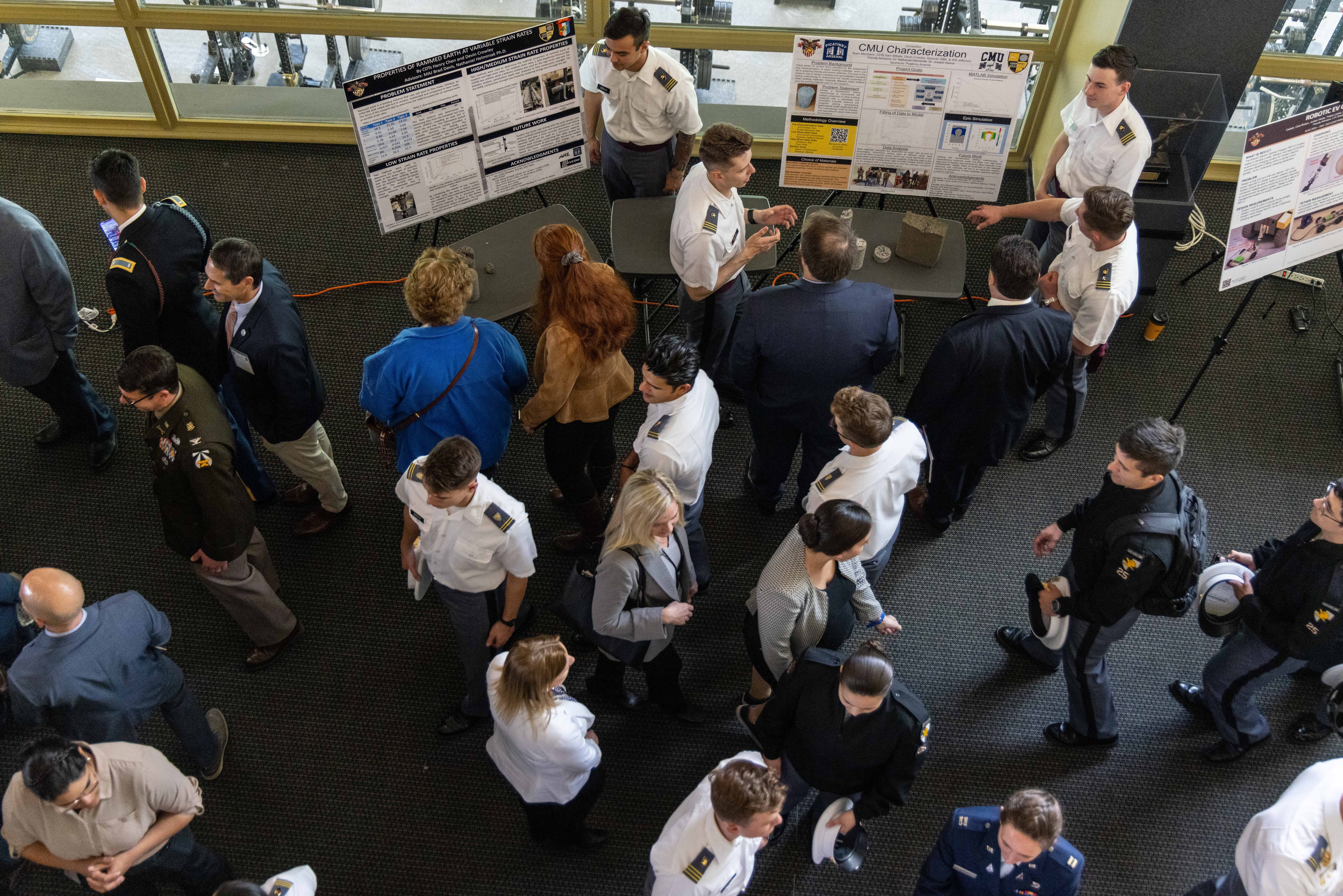In Jefferson Hall, Bartlett Hall, and other locations in Central Area and beyond, military and industry leaders were thrilled to engage with cadets exhibiting state-of-the-art hardware like "Drone Swarms," the "High-Altitude Balloon Closed-Loop System," and an "Adaptive RF Emitter," to name a few.