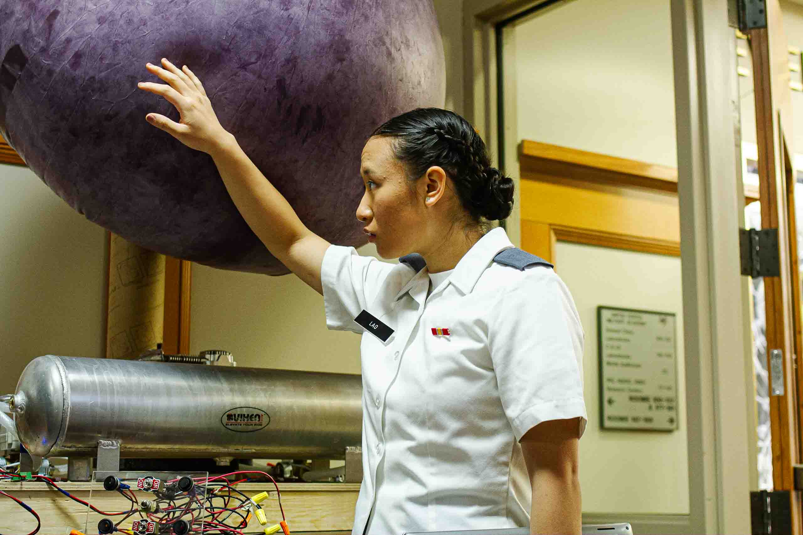 "These balloons can only stay in flight for so long, so what we propose is a closed loop control system that can regulate the amount of helium inside of a balloon so that the altitude can either stay constant at a certain height that we tell it to or fly up and down to adjust and go into altitudes that we apply to it," Bruce said as he and his team presented their project. "We want to eliminate the possibility of the balloon popping and have the payload stay on the balloon for a long period of time so we can bring it down safely and raise it up again."