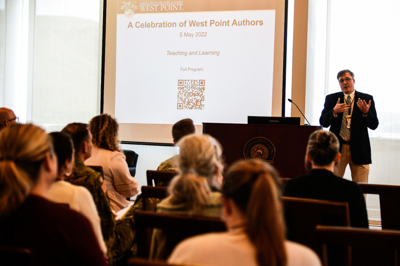Christopher Barth, the associate dean and director of Libraries and Archives at the U.S. Military Academy, was the master of ceremonies during an event that highlighted more than 300 works of scholarship produced at the academy between July and December 2021 on May 5, 2022, at the Haig Room in Jefferson Hall. ...