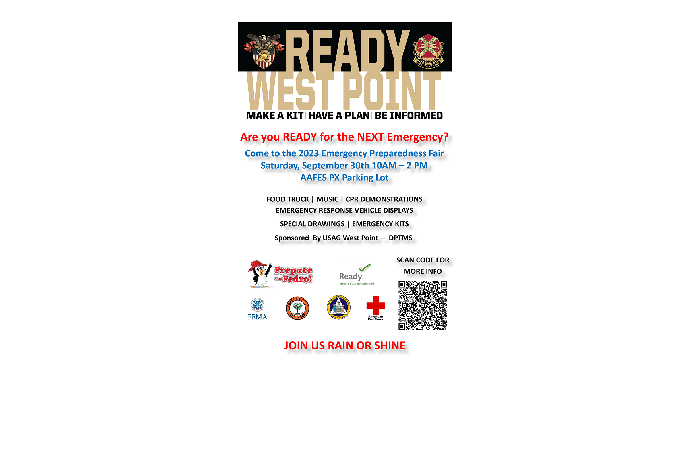 The 2023 Emergency Preparedness Fair takes place from 10 a.m.-2 p.m. Sept. 30 at the AAFES Post Exchange parking lot at West Point. ...