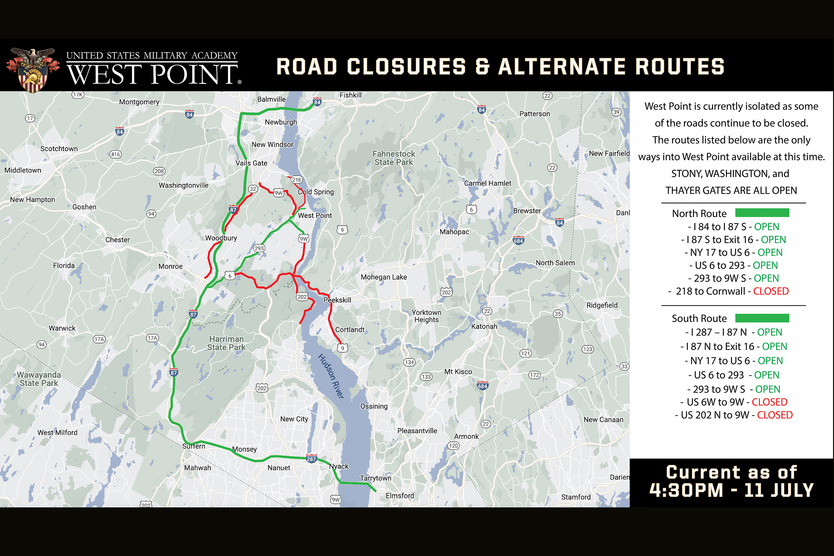 As the U.S. Military Academy at West Point returned to normal operations and the clean-up of the storm from July 9 continues, we remain a strong community working together to ensure that all staff, faculty, cadets and family members within the West Point community are safe....