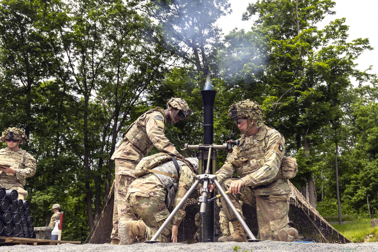 U.S. Military Academy Class of 2025 cadets receive familiarization instruction on firing mortars from Soldiers from the 1st Battalion, 187th Infantry Regiment, 3rd Brigade Combat Team “Rakkasans,ˮ 101st Airborne Division (Air Assault) during Cadet Field Training June 7 at West Point. ...