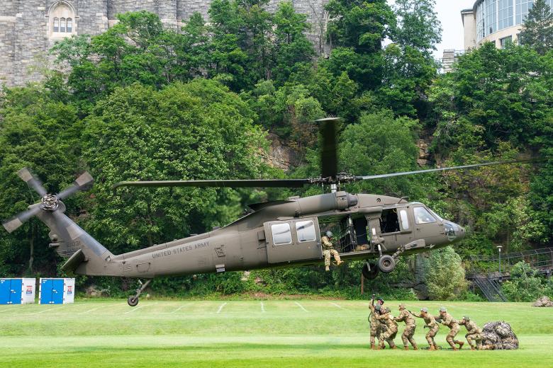 A helicopter hovered above the field at South Dock where The Sabalauski Air Assault School (TSAAS) from Fort Campbell, Kentucky, conducted training. Meanwhile, the trainees watched a sling load with all of their belongings leaving the ground. The tactical movement was a demonstration before the cadets completed the exercise themselves, but the tension was palpable as they watched the pilot take their belongings for a loop over the Hudson River. As promised, the sling load uneventfully landed back onto the field, their belongings safe and sound. ...