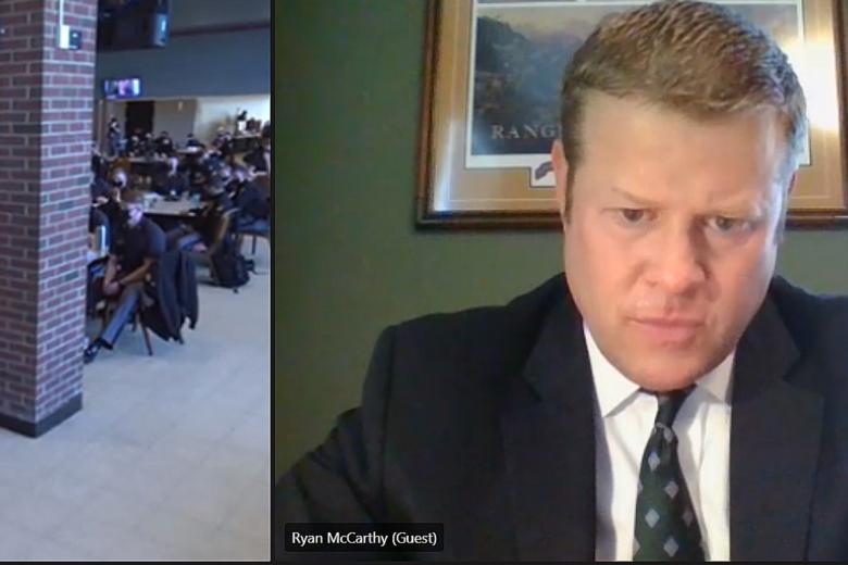 “Today, you have an opportunity to hear from two extraordinary noncommissioned officers who happen to be Medal of Honor recipients,” Commandant Brig. Gen. Curtis Buzzard said as he expressed his excitement for guest speakers Sgt. Maj. Thomas Payne and Sgt. Maj. Matthew Williams, who imparted insight on their military career and practical leadership advice to cadets on behalf of the Modern War Institute Commandant’s Speaker Series at West Point on March 17, 2021, in Eisenhower Hall Theatre. ...