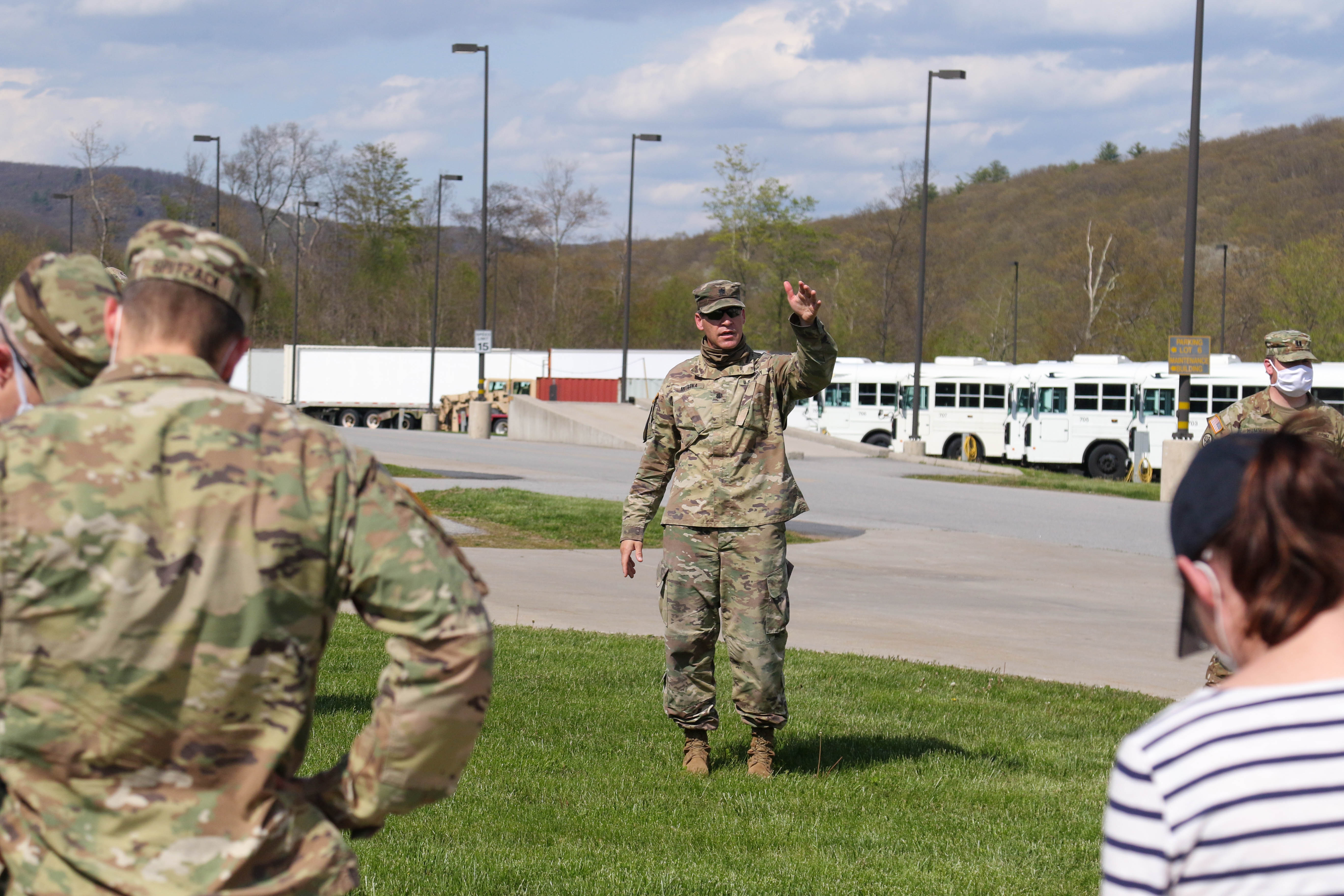 Throughout Tuesday morning, white buses pulled up outside the theater at Camp Buckner, opened their doors and let out a few masked passenger...